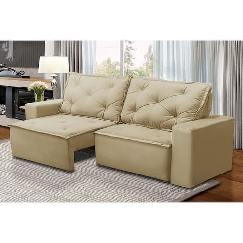 Sofá Retrátil e Reclinável 3 lugares com Molas 2,00m Alana Suede Bege Madelina