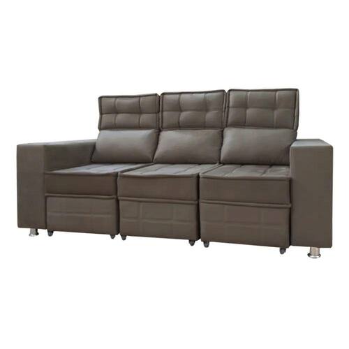 Sofá Retrátil e Reclinável 3 lugares Londres 2.10cm C/Molas - Veludo - Marrom Chocolate