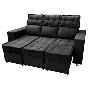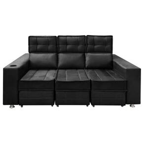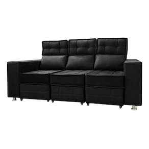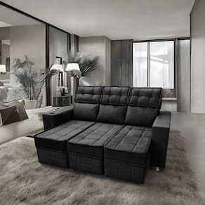 Sofá Retrátil e Reclinável 3 lugares Londres 2.10cm com Molas Veludo Speciale Home - Preto