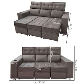 Dimensoes do Produto: Largura: 210 cm Altura: 100 cm. Profundidade: 100 cm. Altura do chao ao assento: 45 cm Largura do Braco: 20 cm Medidas Internas do Assento: L-170 x P- 55 cm Peso: 55 KG