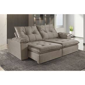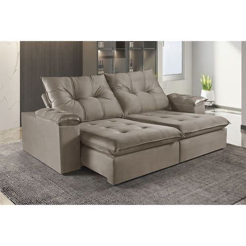 Caracteristicas: Sofa Marca: Martins Estofados Modelo: M-194 Bipartido: facilita o transporte e a montagem Bracos com 25 cm de largura, com pillow de fibra de silicone 4 pes no total -2 por modulo-, em madeira macica Pinus/Sinamomo 4 rodizios de silicone incolor -2 por modulo- Assento retratil com espuma D-28 Soft e molas ensacadas Pillow no assento com 20 cm de altura Tipo de Tecido: Veludo Encosto reclinavel com fibra de silicone -fixo- Persintas elasticas para maior sustentacao Bracos com espuma D-28 firme e pillow de fibra de silicone Revestimento em espuma D-28 Soft Estrutura em madeira de eucalipto tratada, aparelhada Trilho retratil em tubo pintado Catraca com 5 estagios de inclinacao