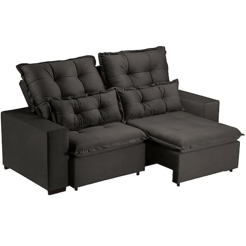 Sofá Retrátil 3 Lugares Reclinável Rincão Yares Suede Chumbo, 230 cm