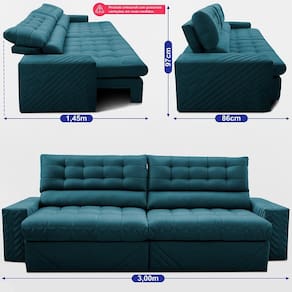 Sofá Retrátil e Reclinável 3,00m Molas Ensacadas Max Spring. Velusoft Cama inBox