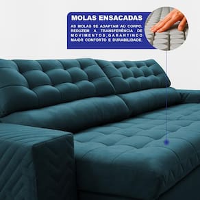 Sofá Retrátil e Reclinável 3,00m de Molas Ensacadas Max Spring Velusoft Cama inBoxConforto premium, preço acessível e design único que transforma sua sala. O Sofá Retrátil e Reclinável Max Spring é a escolha perfeita para quem busca conforto absoluto e durabilidade premium. Combinando a espuma de alta qualidade com a sustentação das Molas Ensacadas e Molas Bonnel, este modelo oferece uma experiência única de relaxamento. Cada assento e encosto se adapta ao corpo de forma inteligente, proporcionando apoio anatômico e eliminando a sensação de afundamento ou desconforto.Invista nessas tecnologias do Sofá Retrátil e Reclinável Max Spring:ConfortTech: Tripla Camada de Conforto InteligenteO Sofá Max Spring conta com o sistema exclusivo ConfortTech, que combina Molas Ensacadas, Espuma D33 com Tecnologia ThermoGel e Fibra Siliconada. Essa união garante sustentação anatômica, frescor constante e maciez duradoura. Um sofá pensado para acompanhar sua rotina e transformar cada momento em descanso de alto padrão.SoftBlend 3D: Design que impressionaO acabamento exclusivo SoftBlend 3D traz sofisticação incomparável ao sofá. Seus bordados pantográficos em alto-relevo, aliados ao matelassê de manta de fibra siliconada compactada com espuma soft, criam um visual elegante e aconchegante. Cada detalhe foi pensado para adicionar personalidade e transformar sua sala em um ambiente moderno, confortável e cheio de charme.Estrutura completa e duradoura- Assento Retrátil: Espuma D33 com ThermoGel, molas ensacadas e bonnel, fibra siliconada e percintas Extra Support. Combinação que garante conforto imediato, molejo ideal e resistência superior.- Encosto Reclinável: Reclinável em 5 posições, com almofadas parcialmente removíveis em 80% fibra siliconada e 20% flocos de espuma, oferecendo suporte ergonômico e maciez envolvente.- Braços: Madeira maciça de eucalipto, 25 cm de largura e acabamento SoftBlend 3D para unir resistência e sofisticação.- Estrutura: Madeira maciça de reflorestamento com grampos galvanizados, reforço que garante firmeza e longa durabilidade.- Tecido: Exclusivo Suede Velusoft, toque macio e aconchegante, perfeito para qualquer decoração.Dimensões do Sofá Retrátil MontadoAltura: 0,97mProfundidade fechado: 0,86mProfundidade aberto: 1,45mLargura: 3,00mMedidas disponíveis: 2,30m, 2,50m, 2,70m e 3,00mCores disponíveis: Azul, Bege, Café, Castor, Cinza, Petróleo, Preto, Vermelho e VinhoPor que escolher o Sofá Retrátil e Reclinável Max Spring?- Não sinta a estrutura com a nossa exclusiva tecnologia ConfortTech que combina espuma D33 com ThermoGel, molas ensacadas e molas bonnel para oferecer conforto absoluto.- Assento Retrátil confortável por muito mais tempo: não afunda, mantém a qualidade e o suporte mesmo após anos de uso.- Conforto ergonômico de verdade: encosto reclinável em 5 posições mais almofadas de fibra siliconada que se moldam ao corpo.- Feito para durar: estrutura em madeira maciça de reflorestamento, resistente ao uso do dia a dia.- Beleza que transforma sua sala: acabamento exclusivo em SoftBlend 3D com tecido Velusoft, união perfeita de sofisticação e aconchego.- Custo-benefício acessível: um sofá retrátil e reclinável com tecnologias de modelos premium por um preço direto de fábrica.Informações extras- Produto já vai montado, não acompanha rodízios. - Peso suportado: até 120kg por pessoa- Garantia: 6 meses (3 meses de garantia legal + 3 meses de garantia da Cama inBox)- Entra facilmente em portas, corredores e elevadores acima de 65 cm de larguraInformações importantes- As tonalidades dos tecidos podem variar de acordo com o lote de produção e também pela resolução da tela do seu monitor ou celular.- Por se tratar de um produto artesanal, podem ocorrer pequenas variações nas medidas de largura, altura ou profundidade.- Objetos de decoração utilizados nas fotos não acompanham o produto.- Nossos produtos seguem um padrão de fabricação, não sendo possível realizar personalizações.- A Cama inBox realiza a entrega até a porta de entrada (casas) ou portaria (prédios). A partir desse ponto, o transporte até o local de uso é de responsabilidade do cliente. Importante: as transportadoras não sobem escadas ou elevadores. Caso ocorram danos durante esse deslocamento interno, a responsabilidade será do cliente.Garanta agora o Sofá Retrátil e Reclinável de Molas Ensacadas Max Spring e descubra que é possível ter o conforto de um sofá premium com preço de fábrica.