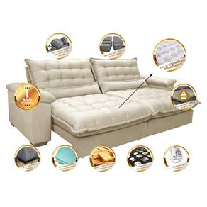 Sofá Retrátil e Reclinável 3,12m com Molas Ensacadas Cama inBox Aconchego Tecido Suede Bege