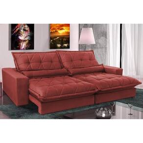 Sofá Retrátil E Reclinável 3,12m Com Molas Ensacadas Cama Inbox Soft Tecido Suede Vermelho
