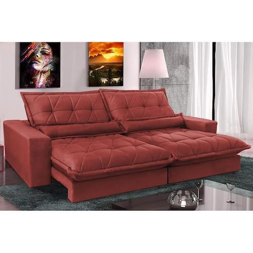 - Nos responsabilizamos pela entrega dos produtos adquiridos até a porta de entrada ou portaria do endereço indicado. Quaisquer despesas ou dano no transporte até o local de uso ficam a cargo do cliente. ""As transportadoras não sobem escadas ou elevadores"". " Tipo de Sofa: Retrátil Reclinável | É sofá de canto: Não | É sofá-cama: Não | Encosto Reclinavel: Sim | Assento Retratil: Sim | Cor: Vermelho | Tonalidade: Vermelho | Desenho do tecido: Liso | Acessórios incluídos: N/A | Fabricante: Cama Inbox | Quantidade de Lugares: 5 | Peso do Produto: 80 | Altura: 112 | Largura: 312 | Profundidade: 127 | Material do estofado: Madeira Reflorestada, Espuma, Tecido | Estilo: Moderno | Complexidade de Montagem: Baixa: pode ser montado por uma pessoa leiga | Tempo Estimado de Montagem: 30 Minutos | Produto: Sofá | Comodo indicado: Salas | Custo da Manutenção: Baixo | Conservação e Manutenção do Produto: Para maior durabilidade, recomendamos que a limpeza dos estofados com revestimento em tecido, seja feito com aspirador de pó em baixa rotação ou escova com cerdas macias para a eliminação de poeira e pano úmido em água. Não utilizar agentes químicos! | Condição do item: Novo | É kit: Não | Complexidade de Montagem Via: Fácil de Montar | Cor Via: Vermelho | Quantidade de Lugares Via: Acima de 4 Lugares | Estado de Origem: PR