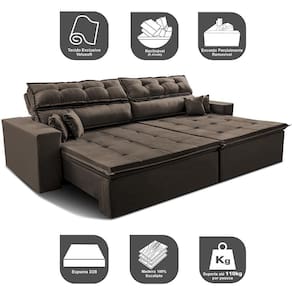 - A Cama inBox fica responsável pelo transporte e entrega do produto adquirido até a porta de entrada ou portaria do cliente. Após a conclusão da entrega no endereço solicitado, o transporte até o local de uso ficará sob responsabilidade do cliente, caso neste momento haja problemas ou danos no produto, ficará a cargo do mesmo. OBS.: As transportadoras NÃO SOBEM escadas ou elevadores. Tipo do Sofa: Retrátil e Reclinável | É sofá de canto: Não | É sofá-cama: Não | Encosto Reclinavel: Sim | Assento Retratil: Sim | Cor: Café | Tonalidade: Café | Cor Pincipal: Café | Cor Via: Marrom Chocolate | Desenho do tecido: Liso | Acessórios incluídos: Não possui | Fabricante: Cama inBox | Quantidade de Lugares: 6 | Peso do Produto: 80 | Altura: 100 | Largura: 312 | Profundidade: 110 | Material do estofado: Madeira Reflorestada, Espuma, Tecido | Estilo: Moderno | Complexidade de Montagem: Média: pode ser montada por mais de uma pessoa leiga | Tempo Estimado de Montagem: 30 | Produto: Sofá | Comodo indicado: Salas | Custo da Manutenção: Baixo | Conservação e Manutenção do Produto: Para maior durabilidade, recomendamos que a limpeza dos estofados com revestimento em tecido, seja feito com aspirador de pó em baixa rotação ou escova com cerdas macias para a eliminação de poeira e pano úmido em água. Não utilizar agentes químicos! | Condição do item: Novo | É kit: Não | Complexidade de Montagem Via: Fácil de Montar | Quantidade de Lugares Via: 6 lugares | Material para Filtro: Espuma | Estado de Origem: PR | Nome do Simples no Fornecedor: Cama inBox | Altura do Produto com Embalagem: 100 | Peso Produto Com Embalagem: 85 | Largura Produto Com Embalagem: 312 | Comprimento Produto Com Embalagem: 110 | Descrição do Tamanho: 312x110x100 | Montagem Necessária: Não | Conteúdo do produto: 1 sofá | Instruções do produto: Para maior durabilidade, recomendamos que a limpeza dos estofados com revestimento em tecido, seja feito com aspirador de pó em baixa rotação ou escova com cerdas macias para a eliminação de poeira e pano úmido em água. Não utilizar agentes químicos!