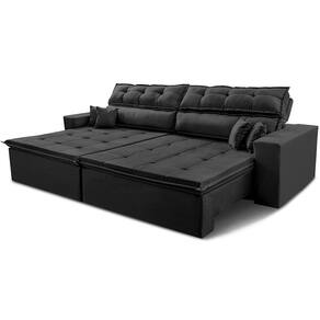 Sofá Retrátil e Reclinável 3,12m Luxos. Cama inBox Velusoft - Preto