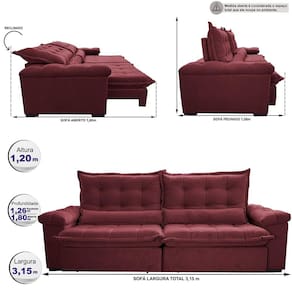 Sofá Retrátil e Reclinável 3,15m Cama inBox Big Fresh. com SoftGel D40 Velupluma - Vinho