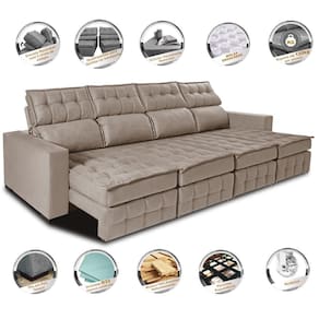 *Assentos: Feitos com espuma D33, Fibra Siliconada, Percintas Pneumáticas e Madeira de Eucalipto, sua estrutura foi desenvolvida para dar mais qualidade e praticidade ao seu dia a dia. Seus assentos são retráteis, dando mais modernidade a sua sala. Além disso, para dar maior conforto e sustentação, na parte do Pillow foram utilizadas Molas Ensacadas de Molejo Duplo, uma excelente opção para passar horas deitado/sentado sem dores e/ou desconfortos.