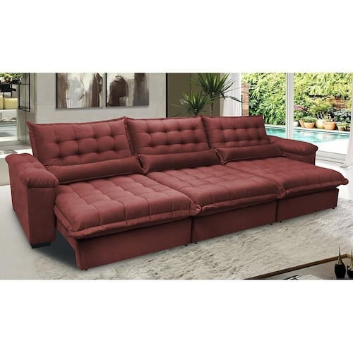 Sofá Retrátil E Reclinável 3,22m Com Molas Ensacadas Cama Inbox Aconchego Tecido Suede Vermelho Confortável e charmoso, o Sofá Cama inBox Aconchego é perfeito para deixar a sua sala completa e garantir momentos relaxantes em família! O móvel deixa o ambiente muito mais aconchegante e sofisticado. Com design charmoso, agrega uma decoração mais luxuosa ao espaço. O que o torna especial são seus assentos com 312 molas ensacadas e espuma D33 envolvidas em fibra Siliconada Compactada para que tenha um toque gostoso e aconchegante. Agora é só reunir o pessoal e aproveitar!