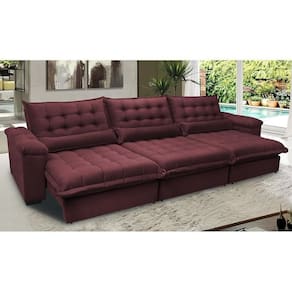 Sofá Retrátil E Reclinável 3,52m Com Molas Ensacadas Cama Inbox Aconchego Tecido Velusoft Vinho