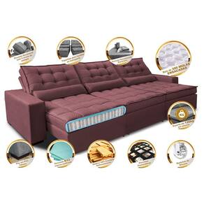 Sofá Retrátil e Reclinável 3,52m com Molas Ensacadas Cama Inbox Gold Tecido Suede Velusoft - Vinho