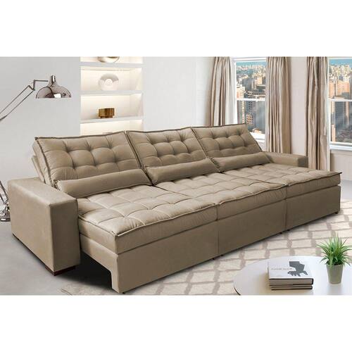 Leve muito conforto e design para sua casa com o Sofá Cama inBox Gold! Esse sofá faz parte da linha especial de estofados Cama inBox que traz uma maravilhosa experiência de conforto. Seus assentos possuem mais de 390 MOLAS ENSACADAS DE MOLEJO DUPLO, uma TRIPLA CAMADA de espumas cobertas por mais uma macia camada de fibra siliconada em seu Pillow TOP, uma sensação inexplicável! Sinta-se abraçado(a) pelo conforto do Maravilhoso Sofá Cama inBox Gold!
