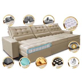 Sofá Retrátil e Reclinável 3,52m com Molas Ensacadas Cama Inbox Gold Tecido Suede Velusoft - Bege