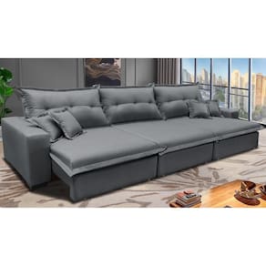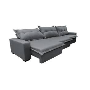Sofá Retrátil E Reclinável 3,52m Com Molas Ensacadas Cama Inbox Prime Tecido Linho Cinza Escuro