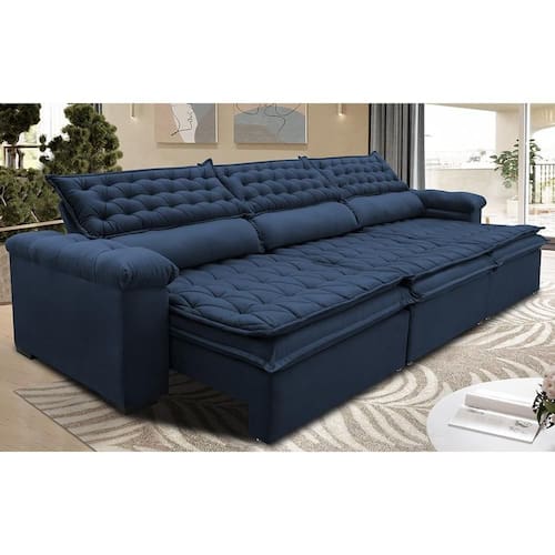 - O sofá possui botões forrados na cor do modelo escolhido em todos os seus encostos.