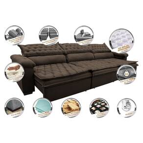 Sofá Retrátil e Reclinável 3,52m Molas Ensacadas Cama inBox Botonê. Espuma Viscoelástico - Marrom