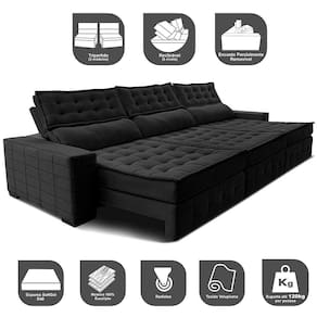 Sofá Retrátil e Reclinável 3,55m Cama inBox Big Puffer. com SoftGel D40 Velupluma - Preto