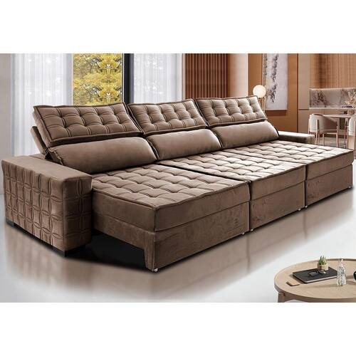 Sofá Retrátil e Reclinável 3,55m Cama inBox Big Star. com SoftGel D40 Velupluma - Palha