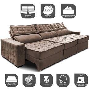O Sofá Retrátil e Reclinável Big Star da linha BIG é um modelo exclusivo que oferece encostos mega gigantes e assentos maiores em comparação com outros do mercado. Ele foi criado para proporcionar charme, elegância e um conforto maravilhoso à sua sala. Sua estrutura interna resistente oferece a estabilidade necessária para este tipo de móvel, enquanto o enchimento em espuma SoftGel D40, Dupla Camada de Manta Siliconada e Percintas Extra Suport dão o suporte necessário para o conforto.Com este sofá, você pode maratonar séries ou descansar nos finais de semana com as pessoas que ama. Sinta-se como se estivesse em um colchão na sua própria sala com o Sofá Retrátil e Reclinável Big Star!