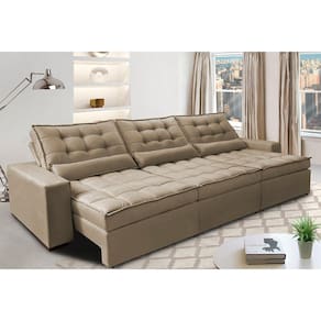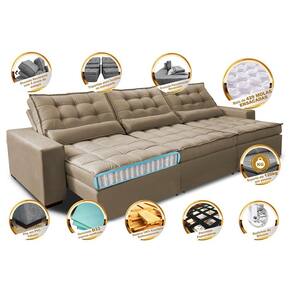 Sofá Retrátil e Reclinável 3,82m com Molas Ensacadas Cama Inbox Gold Tecido Suede Velusoft - Mostarda