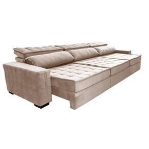 Sofá Retrátil E Reclinável 3,85m Cama Inbox Big Star Com Softgel D40 Velupluma Bege