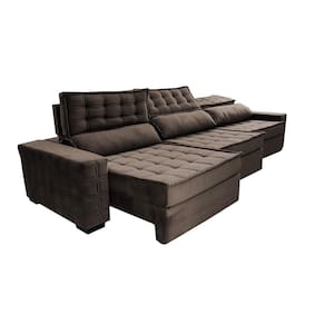 Sofá Retrátil E Reclinável 3,85m Cama Inbox Big Star Com Softgel D40 Velupluma Café