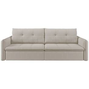 Produto feito com madeira de reflorestamento e revestido com Linho 100% poliéster. No assento, além da espuma D28 temos também manta de fibra de silicone. O encosto possui enchimento de fibra de silicone. Possui pés de madeira maciça. Produto Montado: Sim Acompanha Almofadas extras: Não Almofada do assento: Fixa Almofada do encosto: Removível Altura do assento até o chão: 46.0000 Altura do Encosto: 51 cm Ambiente Principal: Sala de Estar codigo_ean: 7900288221469 Complexidade da Montagem: Baixa: pode ser montado por uma pessoa sozinha Cor: Cru Cor do Produto: Cru Estilo de Braço: Braços Redondos Informações Complementares: Pillow nos assentos com 16 cm de Espuma Contínua S/A D28 Supersoft; Assentos retráteis com mecanismo metálico + molas de aço; Encostos reclináveis em 3 posições diferentes + almofadas soltas com enchimento de fibra de silicone; Costura pespontada com puxõ Itens Inclusos: 1 Sofá e Kit Ferragens Linha ou Coleção: Braga Marca: Estofart Material dos Pés: Madeira Montagem Flex: Não Necessita Montagem: Sim Origem do Produto: Nacional Peso: 91 kg Pet Friendly: Não Possui Percintas Elásticas: Sim Possui Pés: 08 Possui Rodízio: Sim Profundidade Quando Estendido: 150 cm Profundidade quando extendido: 150.0000 Recomendações de Uso, Manutenção e Limpeza: - Não expor ao sol ou fonte de calor; Não utilizar produtos de limpeza como detergente, álcool, solventes, ou produtos químicos; Para a limpeza, utilizar pano umedecido em água, sabão neutro e escova de cerdas macias, deixando secar a sombra. Em caso de excesso de poeira, usar aspirador de pó; Não provocar tensões desproporcionais no assento do sofá, provocadas pro quedas ou pulos; Evitar contatos com animais; Preservar o produto de objetos aquecidos ou pontiagudos; Mantê-lo em local arejado; Não arrastar o sofá pelos braços; Transportar com o máximo de cautela. Rodízio com Trava: Não Sistema de Montagem: Parafusação dos pés na base do sofá e união entre os módulos por engate metálico Suporta Até (kg): 100 kg Tecido Predominante: Linho Tipo de Encosto: Regulável Tipo de Mola: Molas Espirais Tipo de Sofá: Sofá Comum Marca: Não Informado
