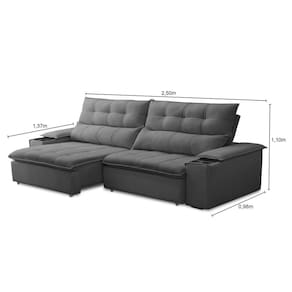 O Sofá Bulgária, é perfeito para promover aconchego e bem-estar, um modelo estruturado com madeira de eucalipto, revestido em veludo, com pés em madeira, rodízios de silicone e encosto reclinável por meio de catraca de 5 estágios, composto por fibra siliconada. Um móvel que abraça com a maciez do veludo que só o Sofá Bulgária pode oferecer. Graças ao seu design, ele é perfeito para trazer o charme que falta ao seu lar, possui braços retráteis com porta objetos, composto por espuma D-20, excelente para acomodar seus familiares e amigos. E para melhorar conte com seu assento retrátil em tubo composto por espuma D-26, um modelo que faz toda a diferença e proporciona todo conforto merecido. Acompanha Almofadas extras: Não Almofada do assento: Fixa Almofada do encosto: Fixa Altura do assento até o chão: 50 Altura do Encosto: 65 Altura dos Pés: 3 Ambiente Principal: Sala de Estar Complexidade da Montagem: Baixa: pode ser montado por uma pessoa sozinha Cor: Grafite Cor do Produto: Grafite Densidade do Assento: D-26 Densidade do Encosto: Camadas de Densidades Diferentes Enchimento do Assento: Espuma Enchimento do Encosto: Fibra Siliconada Estilo de Braço: Braços Quadrados Firmeza do Assento: Médio Informações Complementares: ESTRUTURA: Madeira de lei (Eucalipto) devidamente tratada e aparelhada com reforços e cantoneiras e chapas em MDF.ENCOSTO: Reclinável por meio de catraca metálica de 5 estágios, composto por 100% de fibra siliconada.ASSENTO: Retrátil em tubo, composto por Itens Inclusos: 1 Sofá e Manual de Instruções Linha ou Coleção: Retrátil e Reclinável, com porta copos e objetos Manual de Montagem e Instalação: https://product-hub-prd.madeiramadeira.com.br/871800/documents/823e85b2-33ef-4e2e-aebe-d480776702b38esquemademontagemferguile.pdf Material dos Pés: Madeira Montagem Flex: Não possui Necessita Montagem: Sim Origem do Produto: Nacional Peso: 80 Pet Friendly: Não Possui Percintas Elásticas: Sim Possui Pés: 05 Possui Rodízio: Sim Profundidade Quando Estendido: 137 Recomendações de Uso, Manutenção e Limpeza: Para remoção de poeira, utilizar aspirador de pó em velocidade baixa ou escova com filamentos ultra macios. Para a remoção de líquidos e sujeira derramados de forma acidental, retirar delicadamente sem comprimir o tecido, utilizando pano limpo ou papel absorvente. Não é recomendado utilizar produtos de limpeza domésticos. Para evitar a alteração na cor do revestimento, o estofado não deverá ser exposto ao sol ou a alta luminosidade. Evite o contato do estofado com objetos cortantes, perfurantes e pontiagudos. Para movimentar o estofado de forma correta, levante-o segurando por baixo. Resistente à Chuva: Não Revestimento do Braço: Veludo Rodízio com Trava: Não Sistema de Montagem: Rosqueamento dos pés e encaixe dos encostos Suporta Até (kg): 100 Tecido Predominante: Veludo Tipo de Encosto: Regulável Tipo de Mola: Molas Ensacadas (Molas ensacadas) Ean: 7909903440520