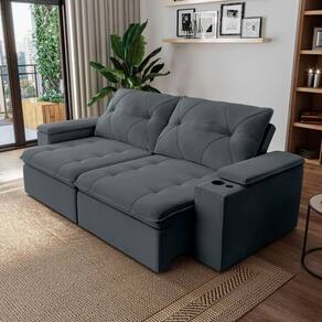Importante sobre a entrega: A entrega é realizada até a portaria ou porta de entrada do endereço indicado, desde que o acesso seja permitido. Para locais com portaria, a entrega será feita no piso térreo. Não realizamos montagem, desmontagem, transporte por escadas ou içamento. É responsabilidade do cliente verificar se as dimensões do produto são compatíveis com portas, elevadores e corredores. Evite imprevistos: confira todos os detalhes antes de concluir sua compra. MEDIDAS:: A = 105 cm L = 252 cm P = 142 cm (Aberto) / 102 cm (Fechado) | PESO SUPORTADO POR ASSENTO:: 130 kg | PESO:: 86 kg | MODELO:: Sofá Retrátil e Reclinável 4 Lugares 2,52m C/ Porta Copos Entrada USB Veludo San Diego | MARCA:: Bex's Estofados | MATERIAL DA ESTRUTURA:: Madeira de reflorestamento oferecendo resistência, durabilidade e qualidade | TIPO DE SOFÁ:: Retrátil e Reclinável | MOLAS:: Molas ensacadas, garantindo maior conforto e sustentação | MATERIAL DO ASSENTO:: Espuma de alta qualidade | DENSIDADE DA ESPUMA:: HR26, firme e confortável, dentro dos padrões ABNT | QUANTIDADES DE LUGARES:: 4 lugares | MATERIAL DO ENCOSTO:: Fibra de silicone, macia e aconchegante | PERCINTAS:: Italianas (Encosto), oferecendo mais resistência e conforto | TECIDO DO SOFÁ:: Veludo, elegante e sofisticado | POSSUI ENCOSTO REMOVÍVEL:: Sim, facilitando a limpeza | MATERIAL DO BRAÇO:: Espuma macia para apoio confortável | MATERIAL DOS PÉS:: Plástico resistente | QUANTIDADES DE PÉS:: 8 | POSSUI RODÍZIOS:: Sim, que facilitam a movimentação | DIFERENCIAL:: Braços deslizantes com porta copos e carregador USB / Assento retrátil com molas ensacadas e espumas HR26 / Encosto ajustável em 3 posições / Almofadas e braços em espuma e fibra de silicone | INSTRUÇÕES E CUIDADOS:: Utilizar pano úmido ou aspirador de pó. Não utilizar produtos abrasivos. | GARANTIA:: 3 Meses. | AVISO:: Importante sobre a entrega: A entrega é realizada até a portaria ou porta de entrada do endereço indicado, desde que o acesso seja permitido. Para locais com portaria, a entrega será feita no piso térreo. | Inclui manual de montagem: Sim | Quantidade de caixas de embalagem: 1 | Requer montagem: Sim | É kit de fábrica: Não | Cor: Cinza