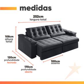 MODELO: Sofá Retrátil e Reclinável 4 Lugares 2,52m Veludo Ilhéus