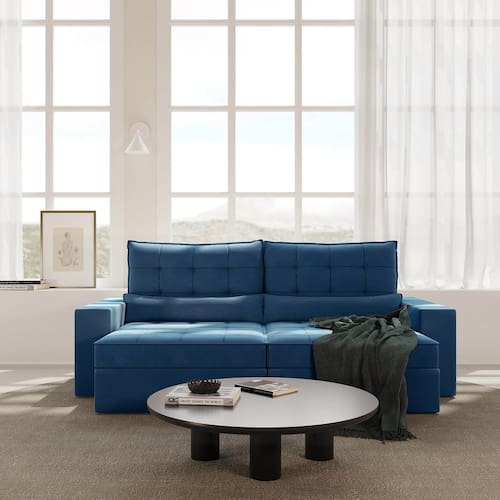 Os estofados retráteis Embaúba Extra combinam linhas econômicas e um design robusto, sem excessos, perfeito para uma sala de estar ou home cinema com um estilo moderno e sofisticado, proporcionando conforto para toda a família. Com suas medidas amplas, são ideais para acomodar todos com comodidade. Com uma ampla variedade de cores, esses estofados se adaptam a diferentes estilos de decoração. Além disso, oferecem opções de cores em tecido de veludo fosco de fácil limpeza com resistência a manchas. O encosto possui uma catraca blindada de 7 estágios de reclinação, preenchida com 100% de fibra siliconada. A estrutura, feita de eucalipto reflorestado, oferece excelente resistência e durabilidade.