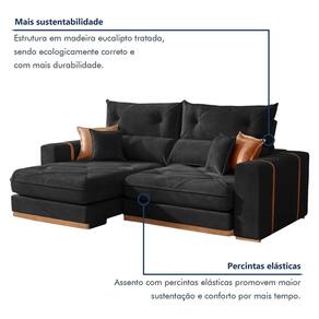 É confortável para dormir? Claro, com o assento aberto fica perfeito para noites de sono ou pequenos cochilos. Produto Montado: Sim Acompanha Almofadas extras: 04 Almofada do assento: Fixa Almofada do encosto: Fixa Altura do assento até o chão: 50.0000 Altura do Encosto: 93 cm Altura dos Pés: 2,5 cm Altura Máxima dos Pés: 2.5000 Ambiente Principal: Sala de Estar codigo_ean: 7900288247117 Complexidade da Montagem: Baixa: pode ser montado por uma pessoa sozinha Cor: Preto Cor do Produto: Preto Densidade do Assento: D-26 Enchimento do Assento: Espuma Enchimento do Encosto: Fibra Siliconada Estilo de Braço: Braços Quadrados Firmeza do Assento: Macio Itens Inclusos: 1 Sofá, 4 Almofadas e Ferragem Largura do Braço: 25 cm Linha ou Coleção: Columbia Marca: Kasacomigo Estofados Material dos Pés: Madeira Necessita Montagem: Sim Peso: 94 kg Pet Friendly: Não Possui Baú: Não Possui Mola: Sim Possui Percintas Elásticas: Sim Possui Pés: 08 Possui Rodízio: Sim Profundidade Quando Estendido: 180 cm Profundidade quando extendido: 180.0000 Quantidade de Estágios do Encosto: 6 Recomendações de Uso, Manutenção e Limpeza: Pano úmido Revestimento do Braço: Veludo Rodízio com Trava: Não Sistema de Montagem: Parafusos. Suporta Até (kg): 300 kg Tecido Predominante: Veludo Tipo de Encosto: Regulável Tipo de Mola: Molas Ensacadas Tipo de Sofá: Sofá Comum Marca: Não Informado