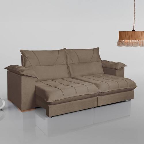 O Sofá Retrátil e Reclinável Italia da Kasacomigo Estofados é perfeito para quem valoriza conforto e elegância. Com um design moderno, ele se adapta a qualquer ambiente. O sistema retrátil e reclinável permite ajustar o assento para um relaxamento personalizado. Feito com estofado de alta qualidade, garante durabilidade e um toque macio. Ideal para transformar sua sala em um espaço acolhedor e sofisticado, proporcionando momentos de descanso superiores. Produto Montado: Não Acompanha Almofadas extras: Não Almofada do assento: Fixa Almofada do encosto: Fixa Altura do assento até o chão: 50.0000 Altura do Encosto: 93 cm Altura dos Pés: 2,5 cm Ambiente Principal: Sala de Estar codigo_ean: 7909903937020 Consistência do Assento: Macio Cor: Bege Cor do Produto: Bege Densidade do Assento: D-26 Enchimento do Assento: Espuma Enchimento do Encosto: Fibra Siliconada Firmeza do Assento: Macio Itens Inclusos: 1 Sofá e manual de instrução Material dos Pés: Madeira Necessita Montagem: Não Peso: 98 kg Pet Friendly: Não Possui Percintas Elásticas: Sim Possui Pés: 08 Possui Rodízio: Sim Recomendações de Uso, Manutenção e Limpeza: Limpeza com pano macio e levemente umedecido. Não utilizar solventes a base e de inflamáveis. Não utilizar produtos abrasivos. Rodízio com Trava: Não Suporta Até (kg): 120 kg Tecido Predominante: Veludo Tipo de Encosto: Regulável Marca: Kasacomigo Estofados