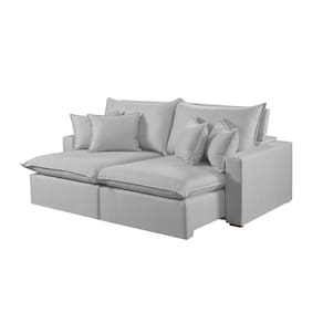 Caracteristicas: Sofa Marca: Martins Estofados Modelo: M-196 Bipartido: facilita o transporte e a montagem 4 pes no total -2 por modulo-, em madeira macica Pinus/Sinamomo 4 rodizios de silicone incolor -2 por modulo- Assento retratil com espuma D-28 Soft e molas ensacadas Pillow no assento com 20 cm de altura Tipo de Tecido: Veludo Encosto reclinavel com fibra de silicone -fixo- Persintas elasticas para maior sustentacao Bracos com 15 cm de largura, revestidos com espuma D-28 firme Revestimento em espuma D-28 Soft Estrutura em madeira de eucalipto tratada, aparelhada Trilho retratil em tubo pintado Catraca com 5 estagios de inclinacao Acompanha almofadas decorativas