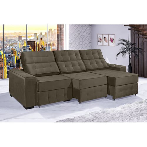 Sofá Retrátil e Reclinável 4,10m ESTILO ESTOFADOS - PARIS 3 módulos com Velusoft D33 "PRATA"