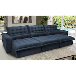Sofá Retrátil E Reclinável 4,12m Com Molas Ensacadas Cama Inbox Aconchego Tecido Velusoft Azul