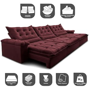 Sofá Retrátil e Reclinável 4,15m Cama inBox Big Fresh. com SoftGel D40 Velupluma - Vinho