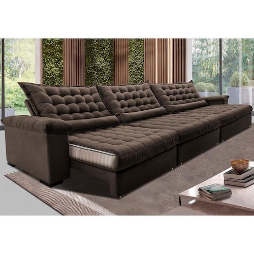 Um modelo exclusivo da Linha BIG, este sofá foi desenvolvido com encostos Mega Gigantes e assentos maiores em relação ao mercado, o Sofá Retrátil e Reclinável Big Space foi desenvolvido para trazer para sua sala charme e elegância, sem falar de seu conforto maravilhoso. Feito com uma estrutura interna resistente, esse modelo conta com a estabilidade necessária para esse tipo de móvel, enquanto o enchimento em espuma D33, Molas Ensacadas de Molejo Duplo e Percintas Extra Suport, dão o suporte necessário para o conforto, sendo perfeito para acomodar você e as pessoas que ama naquela maratona de séries, ou até mesmo para descansarem aos finais de semana. Tenha a sensação de ter um colchão em sua sala com o Sofá Retrátil e Reclinável Big Space!