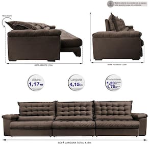Este modelo pertence a Linha Exclusiva BIG, onde os sofás são desenvolvidos com encostos Mega Gigantes e assentos maiores em relação ao mercado.