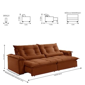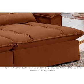 Características: Marca: TXR Modelo: Apolo Tipo: Sofá 5 lugares Retrátil e Reclinável Estrutura: Madeira de origem certificada, Eucalipto Revestimento: Tecido Veludo Pés: Em madeira reflorestada Assento: Retrátil de duplo molejo - mola Bonnel + percinta tipo Italiana + Pillow de molas ensacadas com espuma D28 Encosto: Reclinável em 5 estágios, 100 fibra de silicone Braços: 25 cm com pillow 100 fibra de silicone Rineira: Almofada de fibra de silicone com zíper Retrátil e Reclinável: Com mecanismo em aço