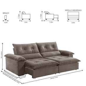 Dimensões: Altura: 112 cm Largura: 210 cm Profundidade Fechado: 120 cm Profundidade Aberto: 180 cm -com encosto reclinado- Peso: 94 kg