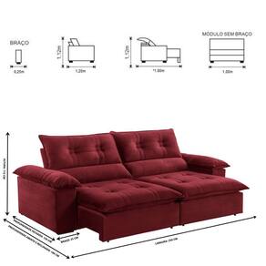 Sofá Retrátil e Reclinável Atenas 2,50m 04 Lugares Mola Ensacada TXR - Bordô
