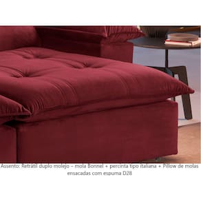 Assento: Retrátil de duplo molejo - mola Bonnel + percinta tipo Italiana + Pillow de molas ensacadas com espuma D28