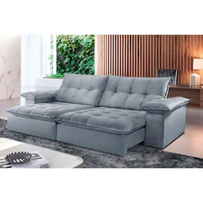 Características: Marca: TXR Modelo: Atlanta Tipo: Sofá 4 lugares Retrátil e Reclinável Estrutura: Madeira de origem certificada, Eucalipto Revestimento: Tecido Veludo Pés: Madeira Reflorestada Assento: Retrátil de duplo molejo - mola Bonnel + percinta tipo Italiana + Pillow de molas ensacadas com espuma D28 Encosto: Reclinável em 5 estágios, 100 fibra de silicone Braços: 25 cm com pillow 100 fibra de silicone Retrátil e Reclinável: Com mecanismo em aço