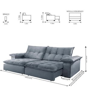 Dimensões: Altura: 112 cm Largura: 230 cm Profundidade Fechado: 120 cm Profundidade Aberto: 180 cm -com encosto reclinado- Peso: 97 kg