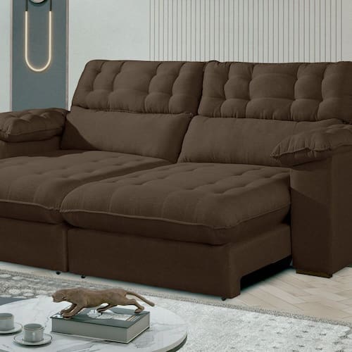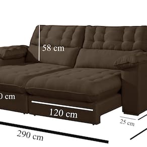 E não para por aí! Aproveite nossa oferta exclusiva e leve para casa o sofá dos seus sonhos com um preço imperdível. Acompanha Almofadas extras: Não Almofada do assento: Fixa Almofada do encosto: Fixa Altura do assento até o chão: 50 cm Altura do Encosto: 58 cm Altura dos Pés: 5 cm Ambiente Principal: Sala de Estar Cor: Marrom café Cor do Produto: Marrom Café Densidade do Assento: D-28 Densidade do Encosto: D-28 Enchimento do Assento: Espuma Enchimento do Encosto: Fibra Siliconada Estilo de Braço: Braços Pillow Top Firmeza do Assento: Médio Informações Complementares: Molas Bonnel e Molas Ensacadas - Duplo Molejo Itens Inclusos: 01 Sofá Retrátil e Reclinável Barcelona Material dos Pés: Madeira Montagem Flex: Não Necessita Montagem: Não Nível de Conforto: Intermediário / Confortável Origem do Produto: Nacional Peso: 40 kg Pet Friendly: Não Porta Copos: Não Possui Baú: Não Possui Entrada USB: Não Possui Percintas Elásticas: Sim Possui Pés: 08 Possui Rodízio: Sim Profundidade Quando Estendido: 180 cm Recomendações de Uso, Manutenção e Limpeza: Limpar com pano levemente umedecido. Não utilzar produtos abrasivos. Revestimento do Braço: Veludo Rodízio com Trava: Não Suporta Até (kg): 120 kg Tecido Predominante: Veludo Tipo de Encosto: Regulável Tipo de Mola: Molas Ensacadas undefined: 915332 Marca: DECOR LAR