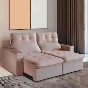O Sofá 2 em 1 - pode ser como sofá fixo e como chaise (apenas com um assento retrátil aberto). Possui design leve, pillow moderno, tecido Veludo.